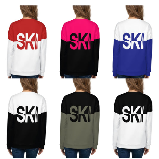 Ski Sweater, Duo Color Sweatshirt White Black, Matching Bachelorette Party Skiing Winter Apres Ski Mountain Pullover Sport Vacation Gift