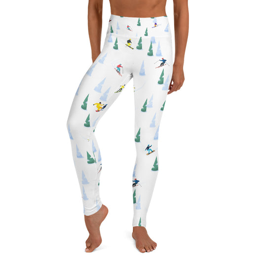 Ski Yoga Leggings Women, Skiing Downhill Trees Winter Sport High Waisted Pants Cute Printed Graphic Workout Gym Designer Tights