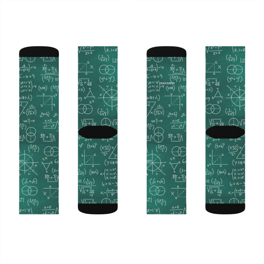 Math Socks, Science Teacher Mentor Chalkboard Formulas Mathematics Algebra 3D Sublimation Socks Men Women Green Crazy Cool Tutor Gift