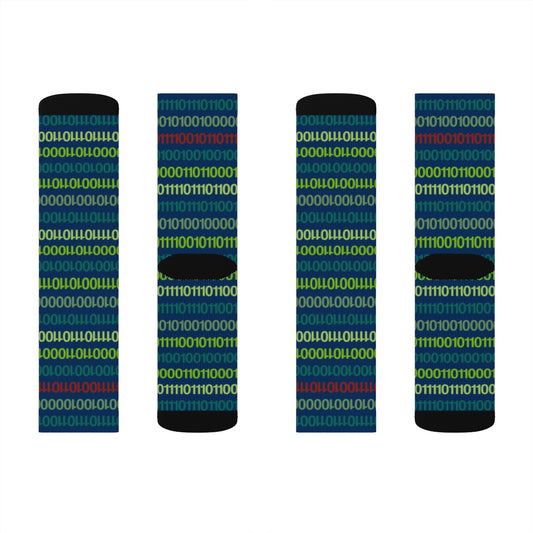 Computer Digital Socks, 3D Printed Sublimation Green Binary Code Programming Women Men Funny Fun Novelty Cool Funky Crazy Unique Gift
