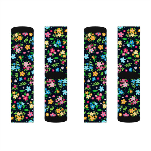 Floral Socks, Black Pattern 3D Sublimated Crew Socks Flowers Sublimation Women Men Dress Fun Novelty Cool Casual Cute Unique Gift