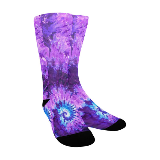 Purple Tie Dye Women Socks, Pink Crew Sublimation Ladies Designer Fun Novelty Cool Funky Crazy Casual Cute Unique Dress Cozy Socks