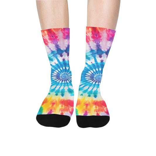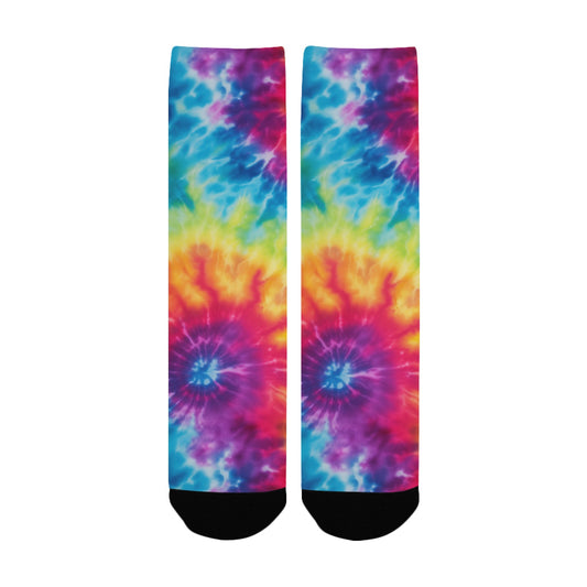 Rainbow Tie Dye Women Socks, Purple Blue Crew Sublimation Ladies Designer Fun Novelty Cool Funky Crazy Casual Cute Unique Dress Cozy Socks
