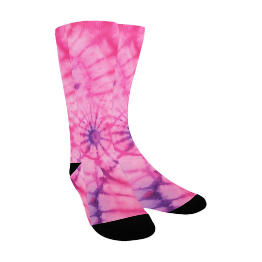 Pink Tie Dye Women Socks, Purple Crew Sublimation Ladies Designer Fun Novelty Cool Funky Crazy Casual Cute Unique Dress Cozy Socks