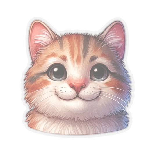 Cat Head Sticker Decal, Kitten Watercolor Art Vinyl Laptop Cute Waterbottle Tumbler Car Waterproof Bumper Clear Aesthetic Die Cut Wall