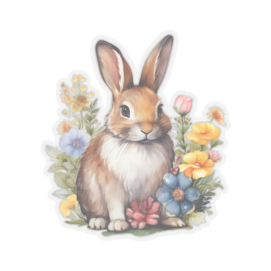 Bunny Rabbit Sticker Decal, Watercolor Animal Floral Art Vinyl Laptop Cute Waterbottle Tumbler Car Waterproof Bumper Clear Aesthetic