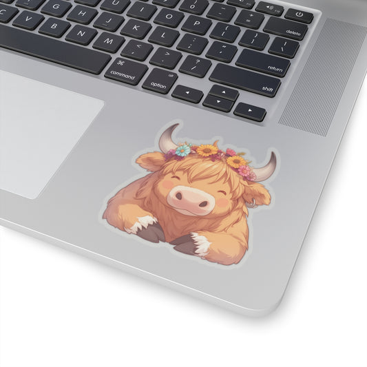 Highland Cow Sticker Decal, Anime Scottish Cattle Floral Art Vinyl Laptop Cute Waterbottle Tumbler Car Waterproof Bumper Clear Die Cut Wall