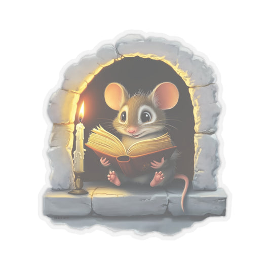 Mouse Reading Book Sticker, 3D Mouse Hole Kids Nursery Wall Decal Art Vinyl Laptop Cute Waterbottle Car Waterproof Bumper Clear Small Large
