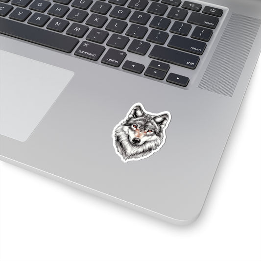 Grey Wolf Sticker Decal, Gray Animal Watercolor Art Vinyl Laptop Cute Waterbottle Tumbler Car Waterproof Bumper Clear Aesthetic Die Cut Wall