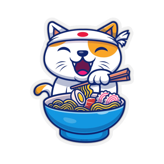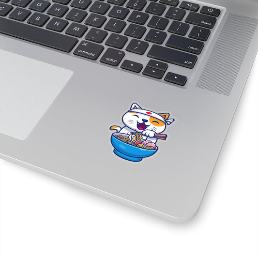 Cat Ramen Food Sticker, Asian Japanese Kawaii Noodle Laptop Decal Vinyl Cute Waterbottle Tumbler Car Waterproof Bumper Die Cut Wall Mural