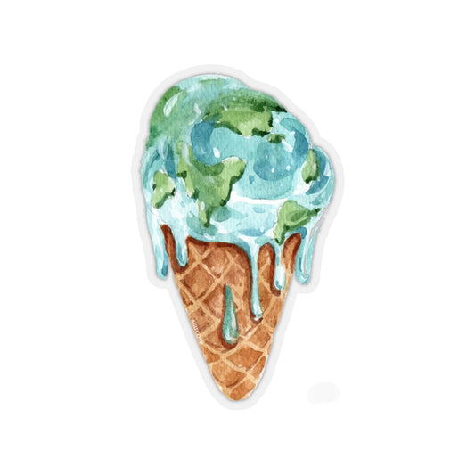 Melting Earth Ice Cream Cone Stickers, Climate Change Planet Global Warming Laptop Vinyl Cute Waterbottle Tumbler Car Bumper Aesthetic Decal