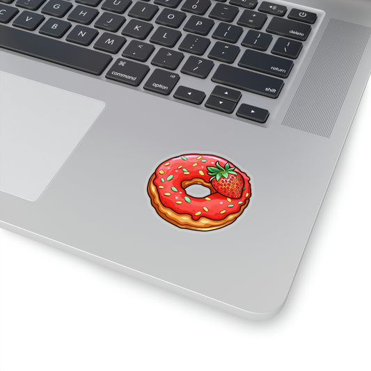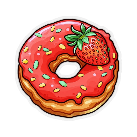 Strawberry Donut Sticker, Food Art Laptop Decal Vinyl Cute Waterbottle Tumbler Car Waterproof Bumper Aesthetic Die Cut Wall Clear