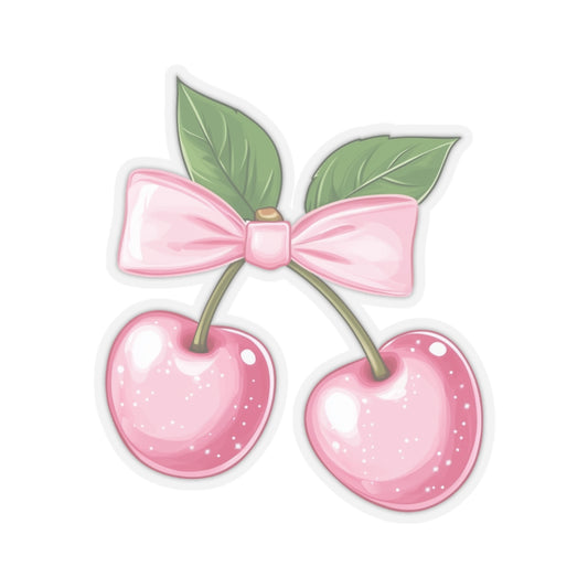 Cherry Coquette Sticker, Pastel Pink Bow Watercolor Decal Art Vinyl Laptop Cute Waterbottle Car Waterproof Bumper Clear Small Large Die Cut