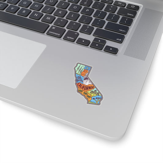 California State Map Art Sticker, CA Card Laptop Decal Vinyl Cute Waterbottle Tumbler Car Bumper Waterproof Aesthetic Wall Small Large Mural
