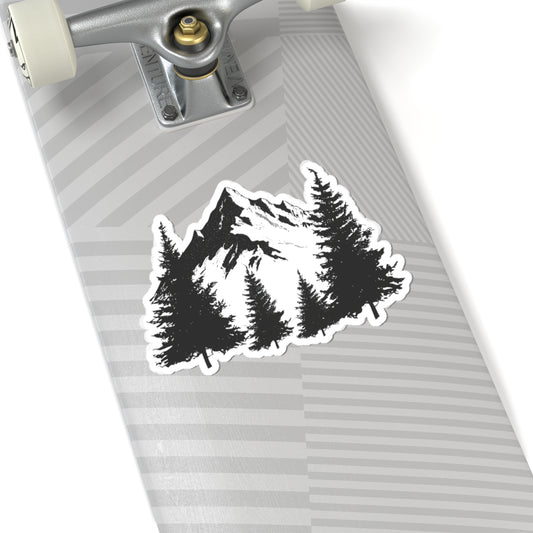 Mountain Sticker Decal, Pine Trees Black White Art Vinyl Laptop Cute Waterbottle Tumbler Car Waterproof Bumper 4x4 Aesthetic Die Cut Wall