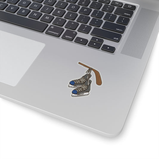 Ice Hockey Skates Stick Decal, Sports Mom Dad Laptop Sticker Vinyl Cute Waterbottle Tumbler Car Bumper Aesthetic Label Wall Mural Die Cut