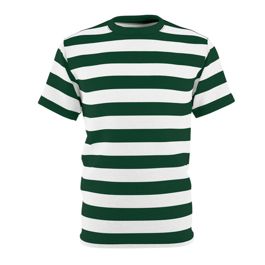 Green and White Striped Tshirt, Designer Graphic Aesthetic Lightweight Heavyweight Crewneck Men Women Tee Top Short Sleeve Shirt