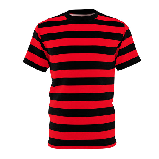 Red and Black Striped Men Tshirt, Horizontal Bold Stripes Designer Lightweight Heavyweight Aesthetic Fashion Crewneck Tee Top Shirt