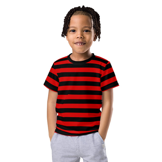 Red and Black Striped Kids Tshirt (2T-7), Stripes Boys Girls Children Youth Graphic Halloween Crewneck Tee Short Sleeve Shirt Top