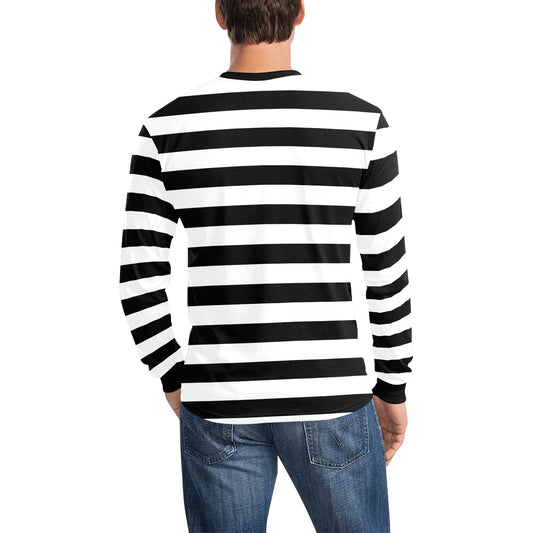 Black White Men Long Sleeve Striped TShirt, Graphic Vintage Retro Stripes Crewneck Unisex Women Designer Tee