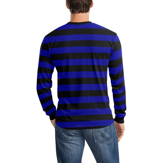 Black and Blue Men Long Sleeve Striped TShirt, Graphic Vintage Retro Broad Stripes Crewneck Unisex Women Designer Male Guys Tee Shirt