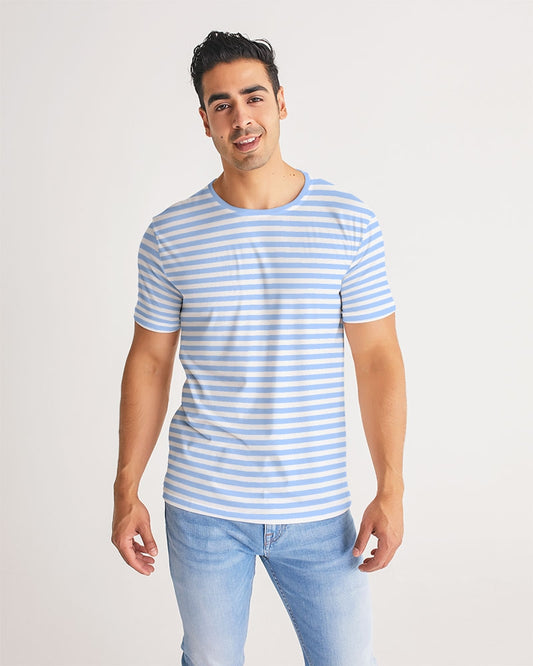 Blue White Striped Tshirt, Designer Graphic Aesthetic Lightweight Summer Crewneck Men Male Women Tee Top Short Sleeve Shirt