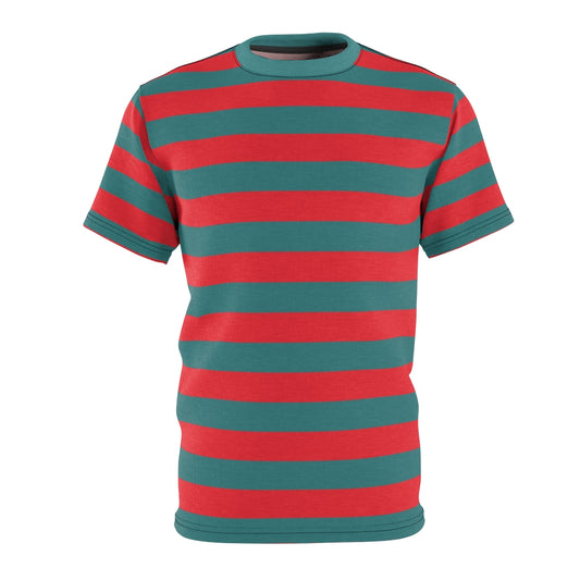 Green and Red striped Men T Shirt, Vintage Horizontal Stripes 90s Unisex Designer Crewneck Short Sleeve Tee Gifts