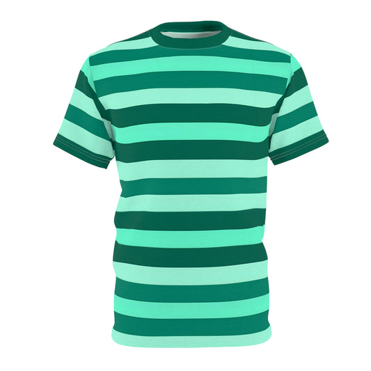 Green on Green Striped Men T Shirt, Bold Horizontal Stripes Designer Lightweight Heavyweight Crewneck Men Women Tee Short Sleeve Shirt