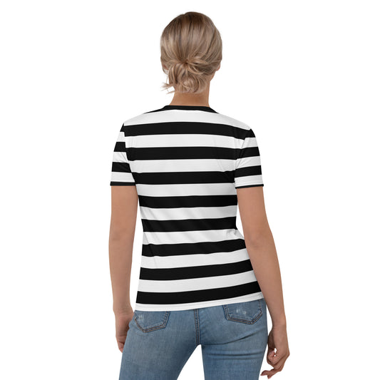 Black and White Striped Women Tshirt, Vintage Retro Designer Adult Graphic Aesthetic Fashion Fitted Crewneck Tee Shirt Top