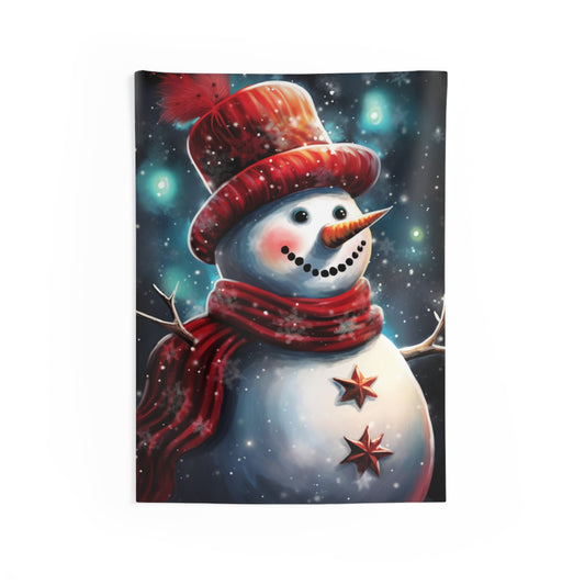 Snowman Tapestry, Xmas Christmas Night Sky Vintage Wall Art Hanging Cool Unique Vertical Aesthetic Large Small Decor Bedroom College Dorm