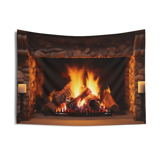 Fireplace Tapestry, Stone Fire logs Vintage Wall Art Hanging Cool Unique Landscape Aesthetic Large Small Decor Bedroom College Dorm Room