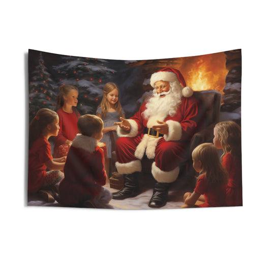 Santa Claus Tapestry, Children Christmas Stories Wall Art Hanging Landscape Cool Unique Aesthetic Large Small Decor Bedroom Nursery Kids
