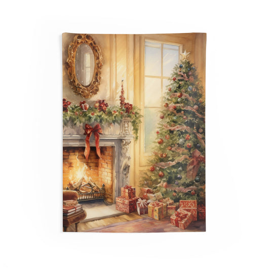 Christmas Tree Fireplace Tapestry, Vintage Retro Wall Art Hanging Cool Unique Vertical Aesthetic Large Small Decor Bedroom College Room