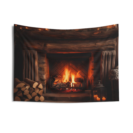 Fireplace Tapestry, Wooden Fire logs Vintage Wall Art Hanging Cool Unique Landscape Aesthetic Large Small Decor Bedroom College Dorm Room