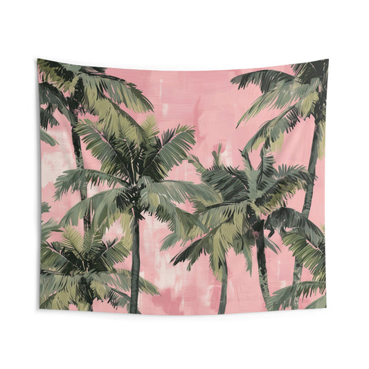 Palm Trees Tapestry, Green Pink Wall Art Artwork Hanging Cool Unique Landscape Aesthetic Large Small Decor Bedroom College Dorm Room