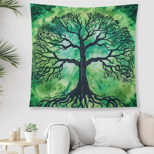 Tree Of Life Tapestry, Green Tie Dye Hippie Fabric Wall Art Hanging Cool Unique Landscape Aesthetic Large Small Decor Bedroom College Dorm