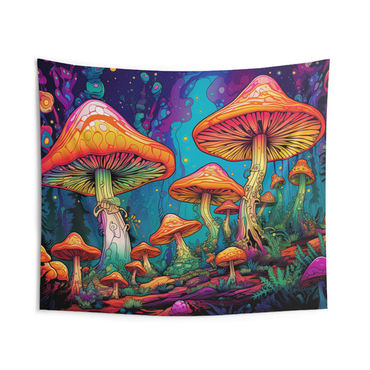 Trippy Mushrooms Tapestry, Psychedelic Wall Art Hanging Cool Unique Landscape Aesthetic Large Small Decor Bedroom College Dorm Room