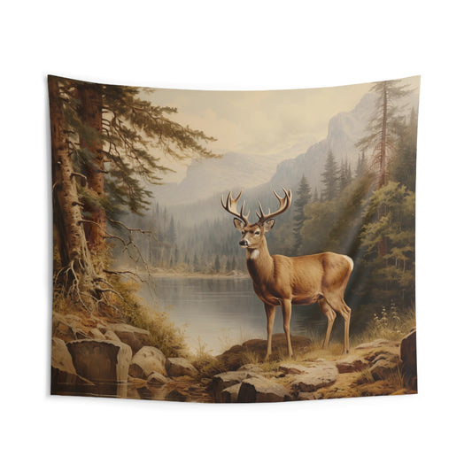 Vintage Deer Tapestry, Nature Lake Animal Wall Art Hanging Cool Unique Landscape Aesthetic Large Small Decor Bedroom College Dorm Room