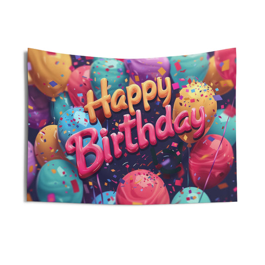 Happy Birthday Tapestry, Balloons Festive Wall Art Hanging Cool Unique Landscape Large Small Decor Bedroom College Dorm Room