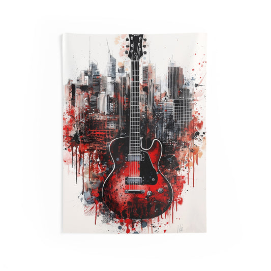 Guitar City Tapestry, Watercolor Wall Art Hanging Cool Unique Landscape Vertical Aesthetic Large Small Decor Bedroom College Dorm Room