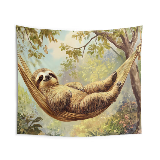 Sloth Hammock Tapestry, Animal Vintage Retro Wall Art Hanging Cool Unique Landscape Aesthetic Large Small Decor Bedroom College Dorm Room
