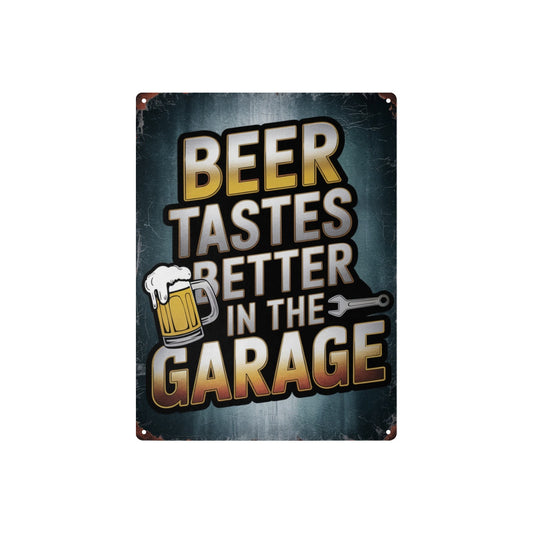 Beer Tastes Better In The Garage Vintage Metal Tin Signs, Mancave Home Bar Retro Wall Art Hanging Brewing Tacker Outdoors Exterior Plaques