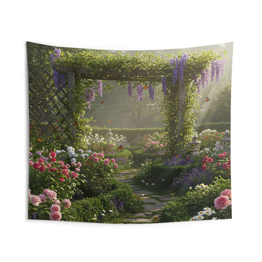 English Garden Tapestry, Flowers Roses Nature Scenic Printed Wall Art Hanging Unique Landscape Large Small Decor Bedroom College Dorm Room