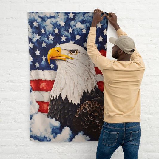 American Bold Eagle Flag Tapestry, USA Patriotic Red White Blue Wall Art Hanging Cool Unique Vertical Decor Bedroom College Dorm Room