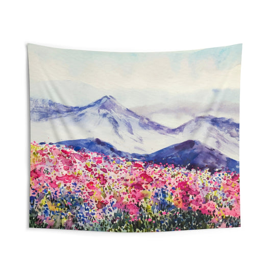 Flower Mountain Tapestry, Watercolor Pink Colorful Landscape Indoor Wall Art Hanging Tapestries Large Small Decor Home Dorm Room Gift