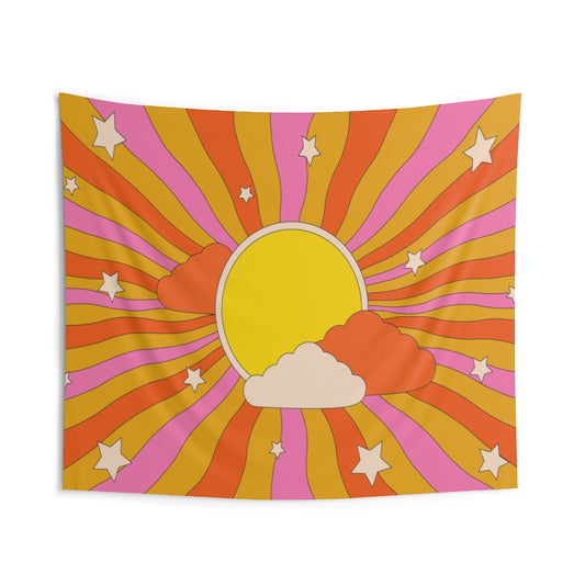 Groovy Sunburst Tapestry, Retro Sun 70s Vintage 1970s Landscape Wall Aesthetic Art Hanging Large Small Decor College Dorm Gift