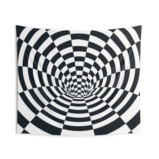 Trippy Tapestry, Dark Blue White Psychedelic Optical Illusion Landscape Indoor Wall Art Hanging Large Small Decor Home Dorm Room Gift