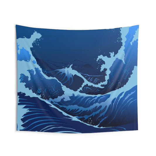 Blue Japanese Wave Tapestry, Nautical Home Decor Stormy Sea Great Waves Wall Dorm Ocean Art Coastal Surf Indoor Hanging Tapestries