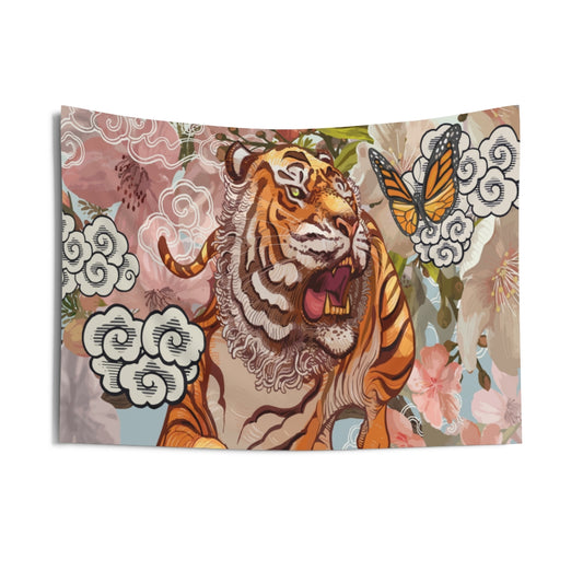 Roaring Tiger Butterfly Art Tapestry, Japanese Landscape Indoor Wall Art Hanging Tapestries Large Small Decor Home Dorm Room Gift