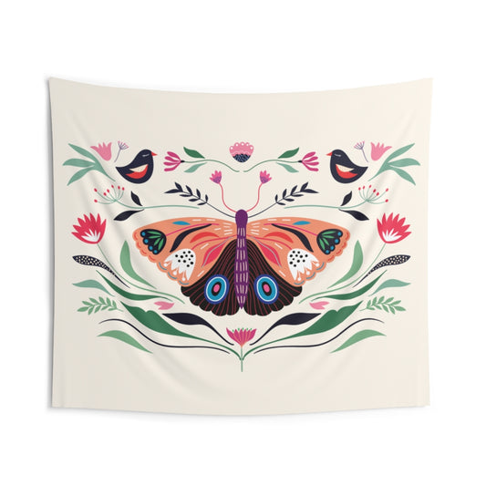Butterfly Tapestry, Birds Flowers Vintage Floral Landscape Indoor Wall Art Hanging Large Small Decor Home Dorm Room Gift